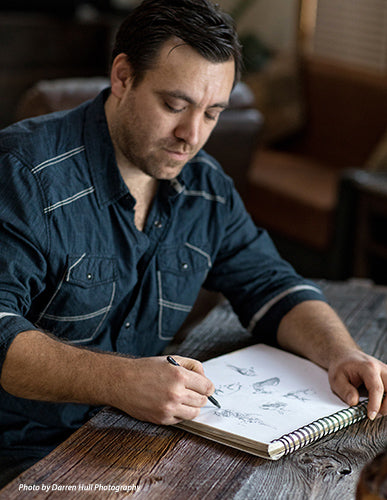 Like most young Canadians, his dream was to be a hockey player, which he pursued along with football, however in high school he also began to draw and paint. Now in his 40s, he has been painting full-time for over 20 years and currently lives on a ranch in the Rocky Mountains of British Columbia with his wife Leah.