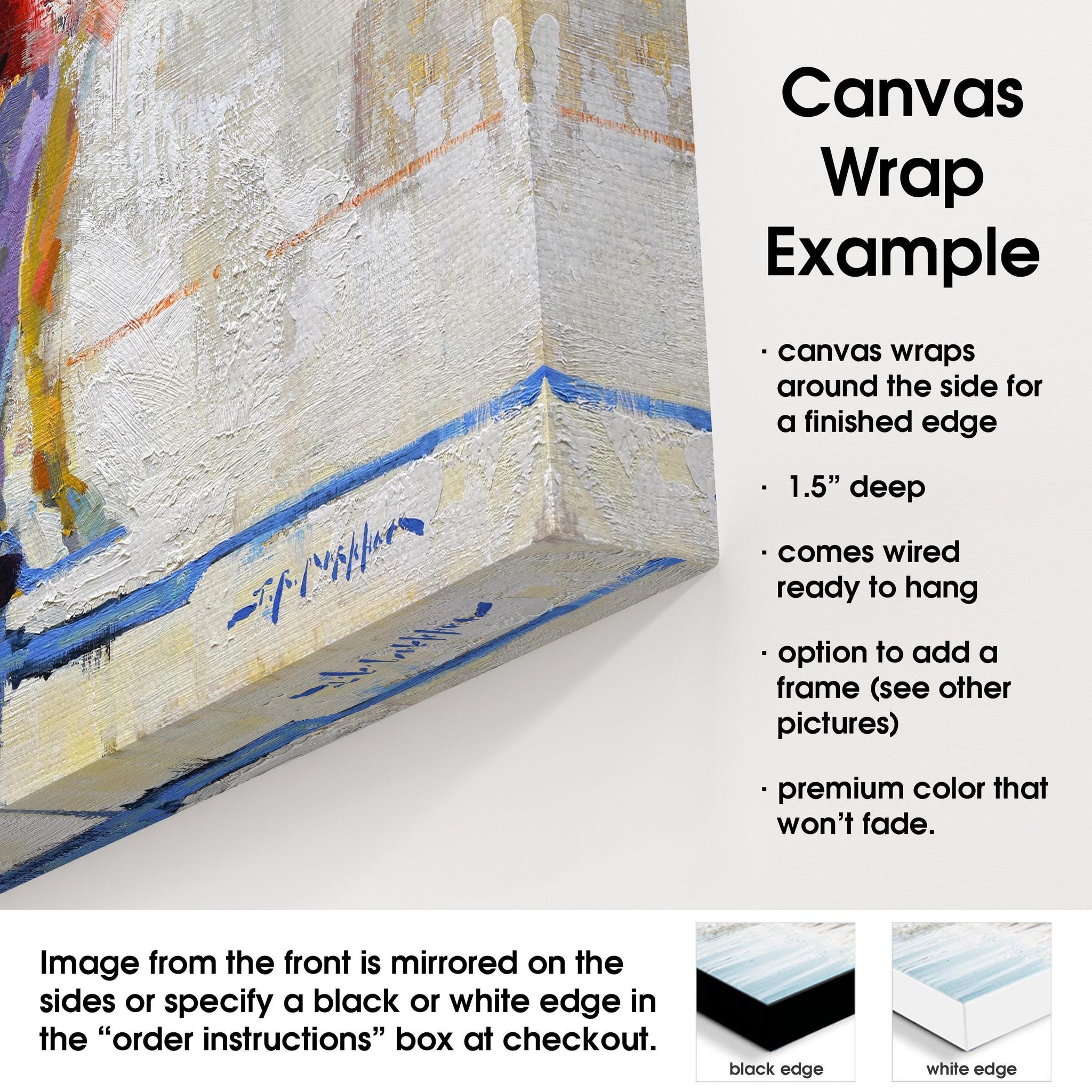Custom made at a professional print shop using high quality gallery canvas with premium color designed to last over 100 years with no fading. Comes ready to hang with hanging hardware attached.