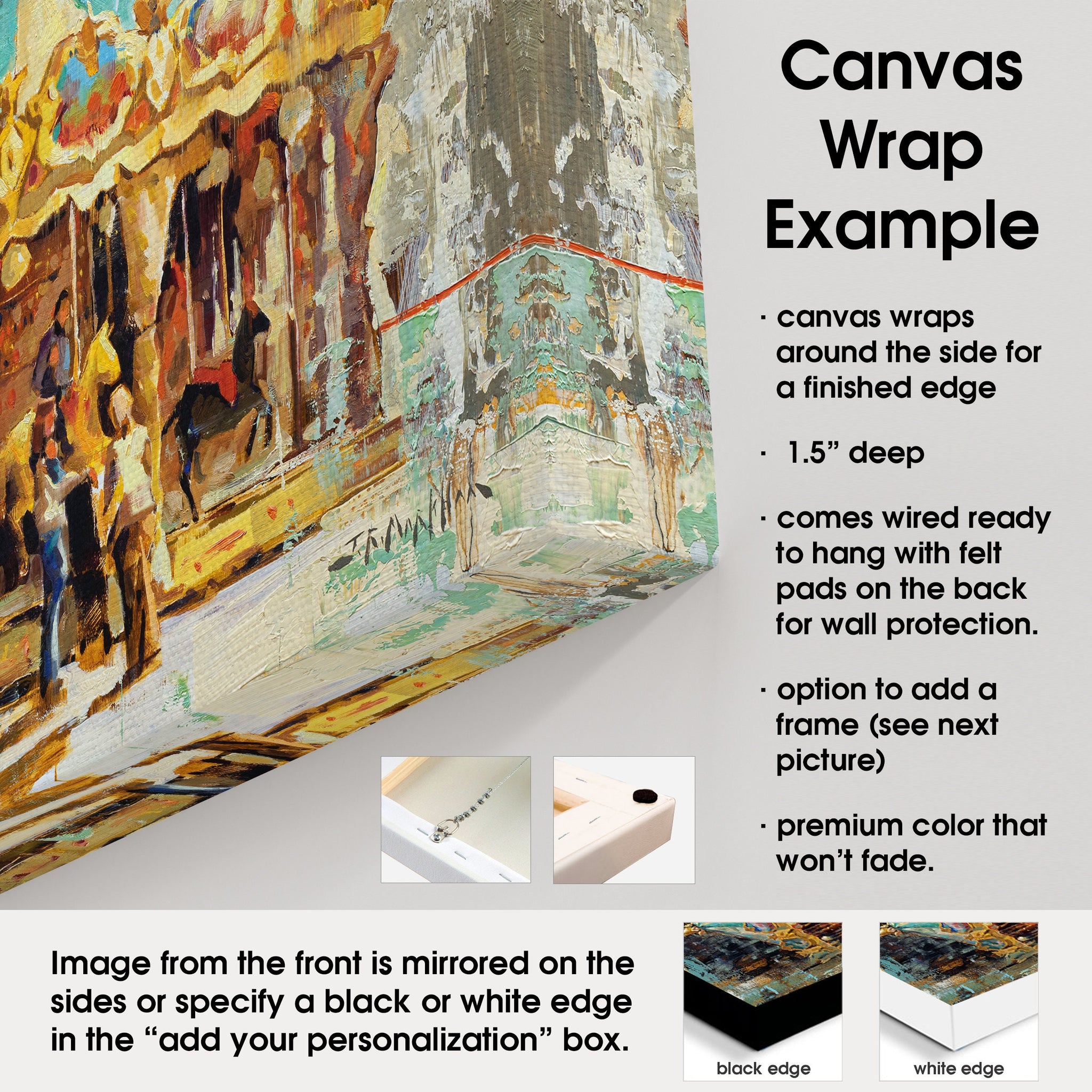 Custom made at a professional print shop using high quality gallery canvas with premium color designed to last over 100 years with no fading. Comes ready to hang with hanging hardware attached.