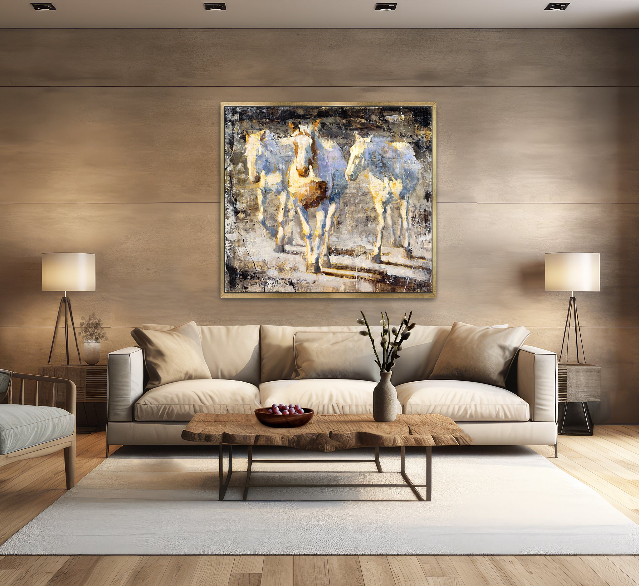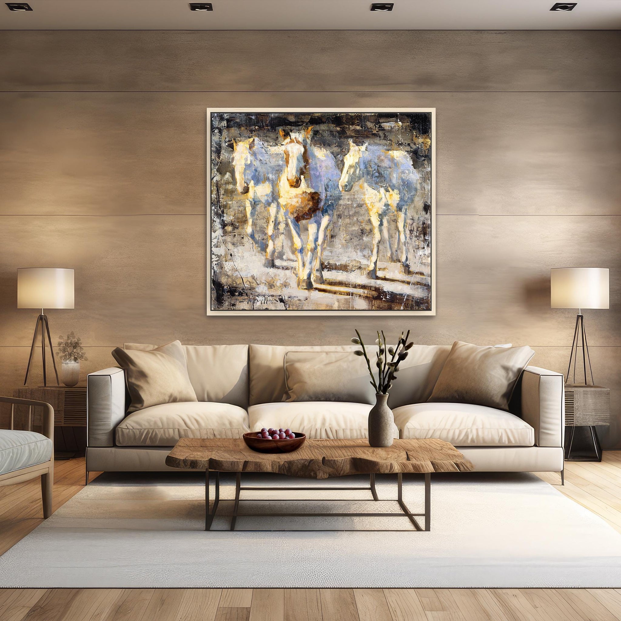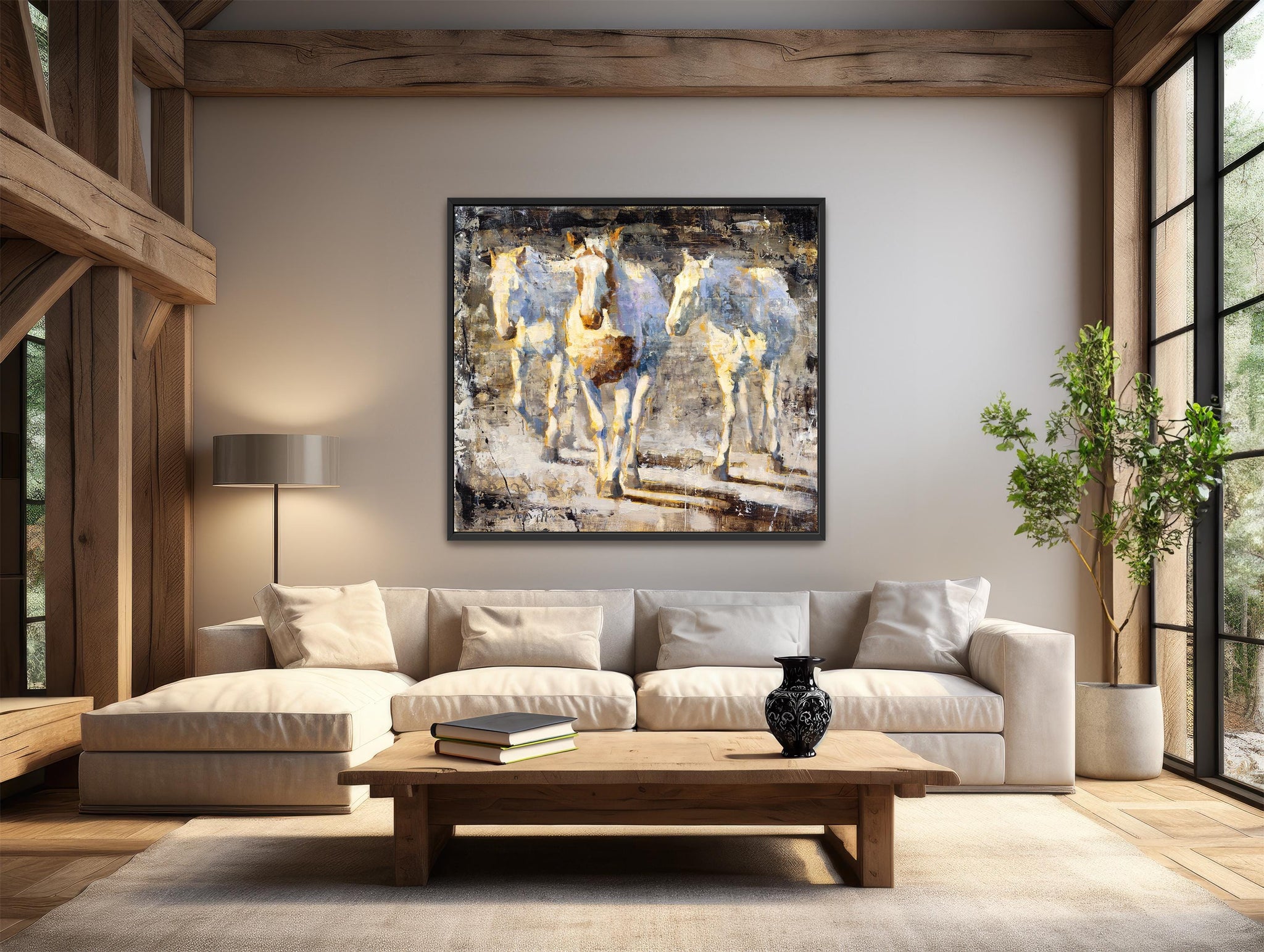 Canvas print of three horses from the original oil painting by Jerry Markham. Original painting is sold.