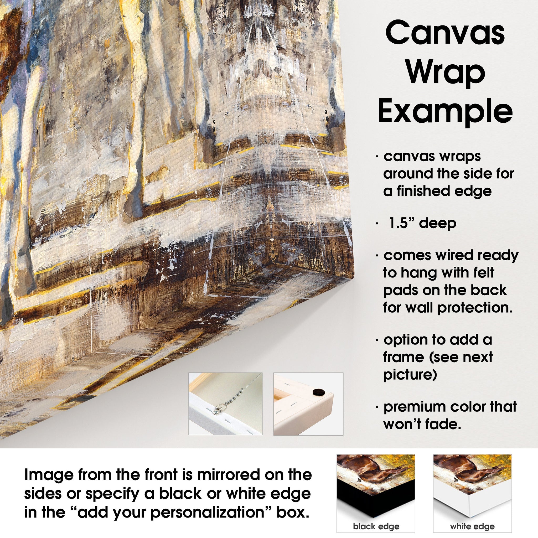 Custom made at a professional print shop using high quality gallery canvas with premium color designed to last over 100 years with no fading. Comes ready to hang with hanging hardware attached.