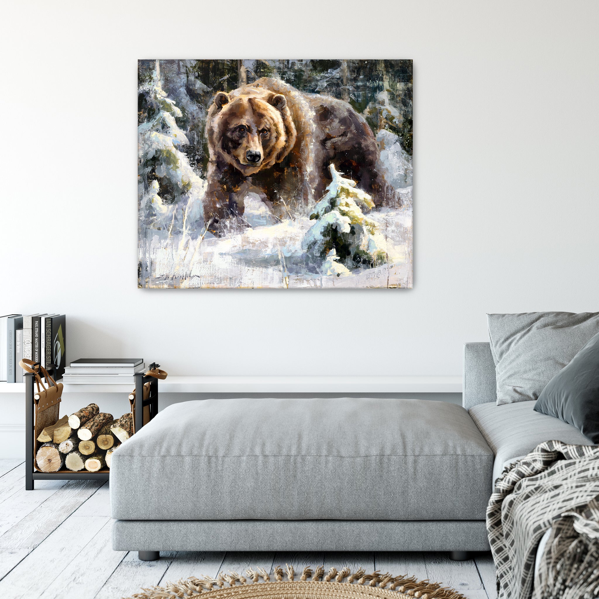 Grizzly bear in winter landscape canvas print from the original oil painting by Jerry Markham. Original painting is sold.